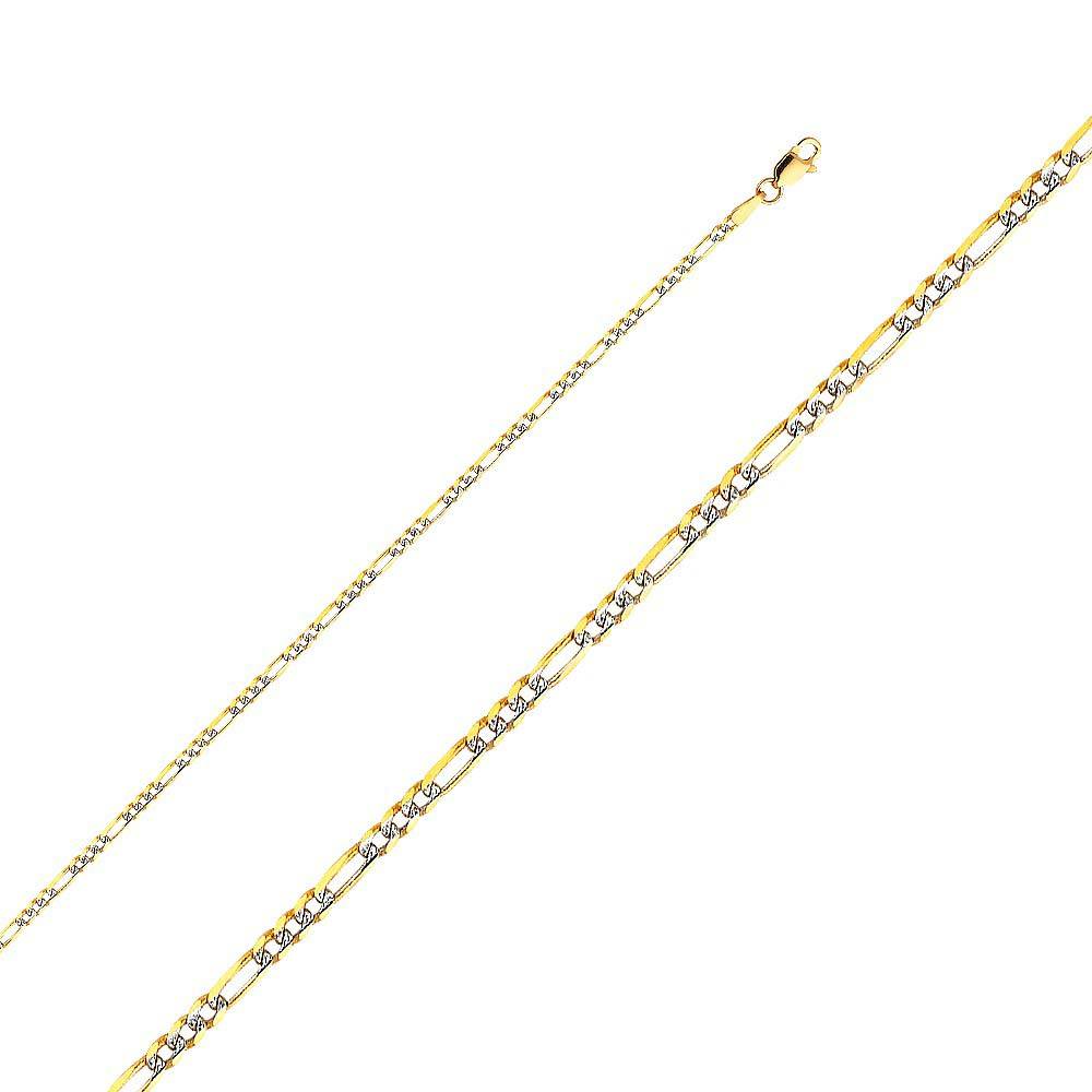 Wholesale 14K Yellow Gold 2.3mm Lobster Figaro 3+1 WP Light Link Chain With Spring Clasp Closure