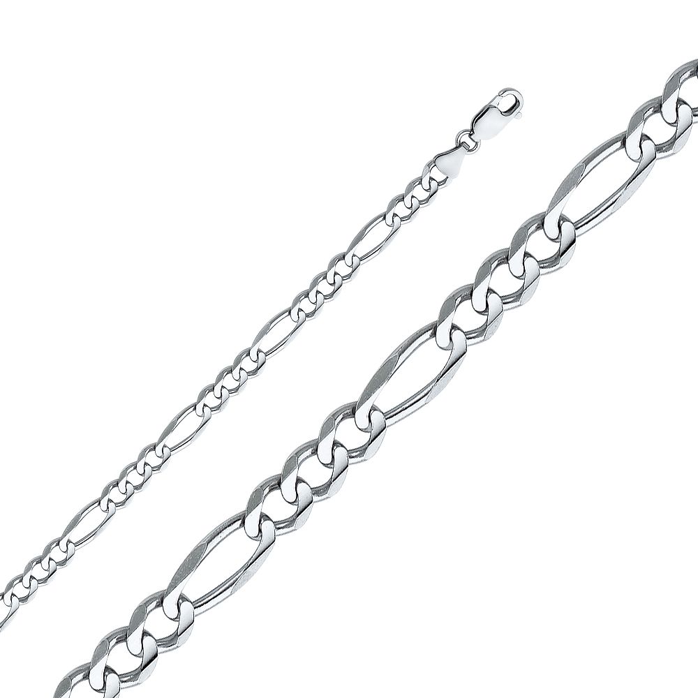 14K White Gold 6mm Lobster Figaro 3+1 Concave Regular Link Chain With Spring Clasp Closure