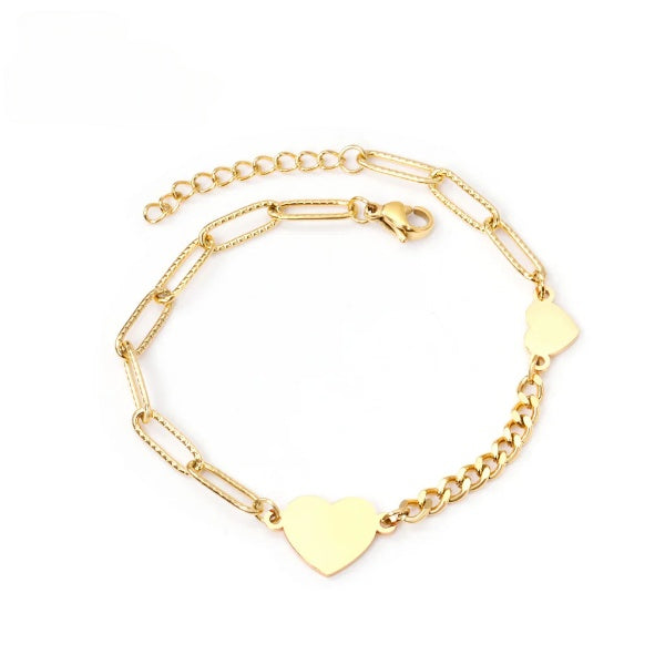 Stelluxe Stainless Steel Gold Color PVD Heart Shape Charms Bracelet