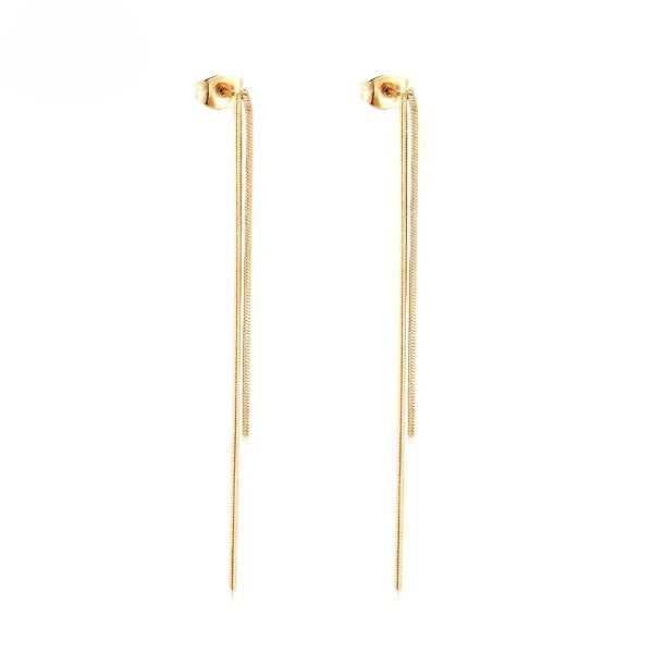 Stelluxe Stainless Steel Gold Color PVD Simple Long Tassel Earrings